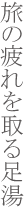 エネルギーを消耗する全身浴に比べ、内臓への負担を少なくし長時間湯に浸っていれれるのが足湯です。足を温めることで全身の血行を良くし、冷え症、不眠症、低血圧、風の予防、寒さによる体のこわばり、疲れ、だるさ、むくみ、しびれなどに効果がある入浴法です。