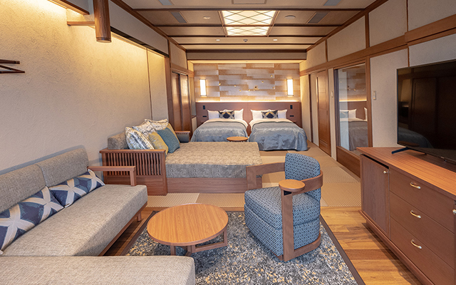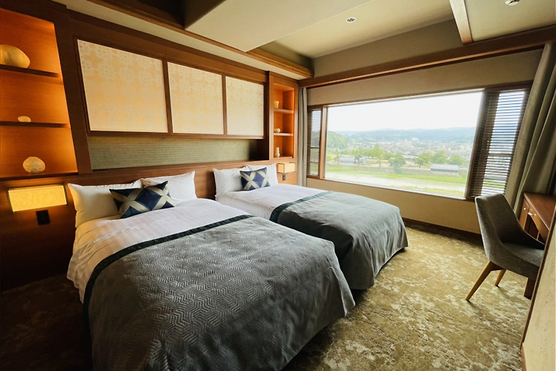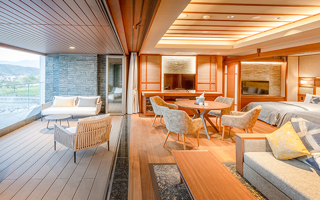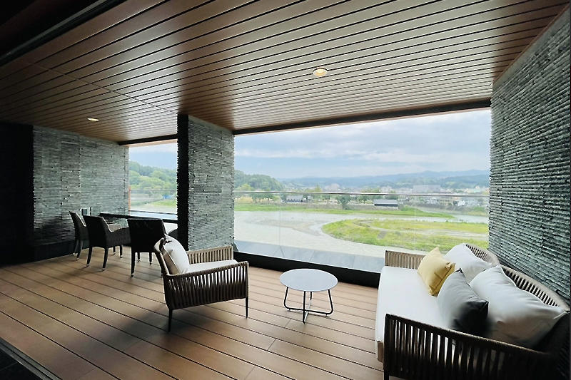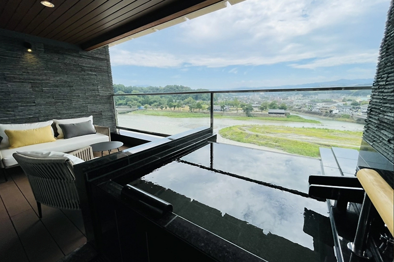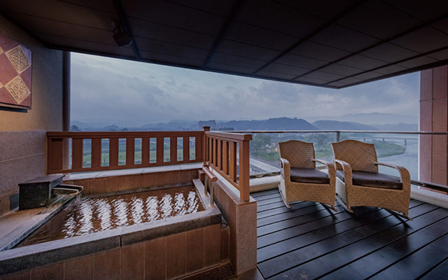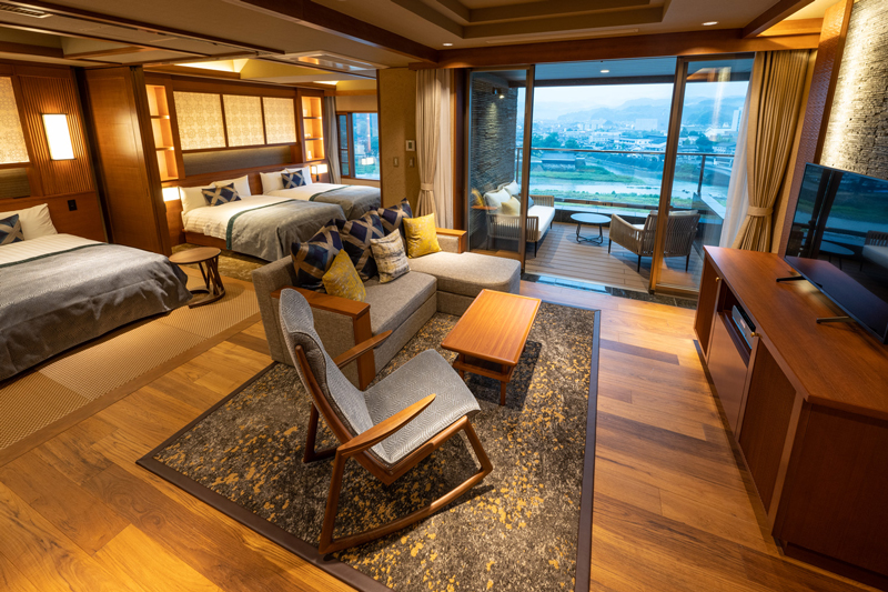 当旅館の温泉露天風呂付客室 CRESCENTは、球磨川側に配置していています。