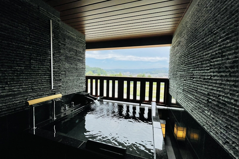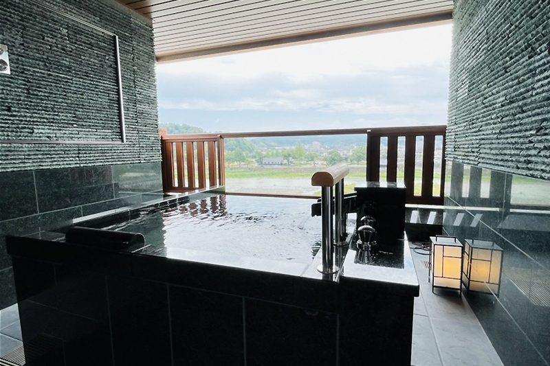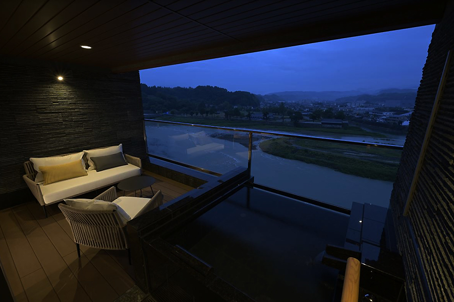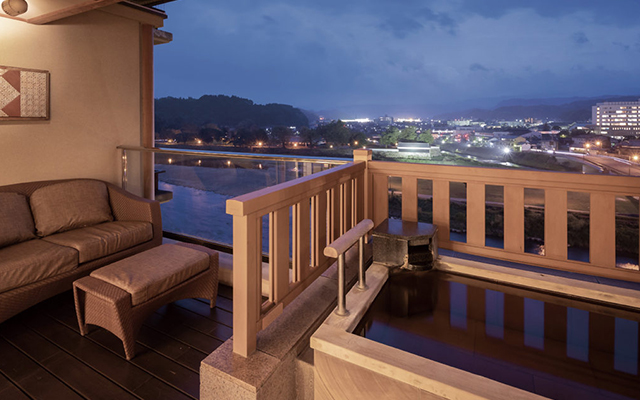 歴史漂う風景に清流のせせらぎを聞きながらの露天風呂はプライベートな空間で贅沢な時間をお過ごしいただけます。