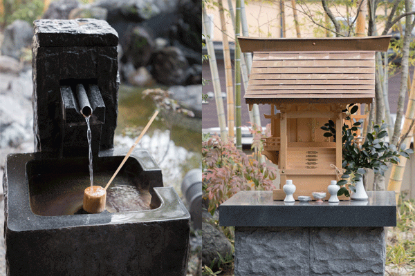 実は、温泉にはもうひとつエピソードがあります。玄関先に、鮎里源泉を祭った温泉神社がありますが、お社が豪雨で流されてしまったんです。