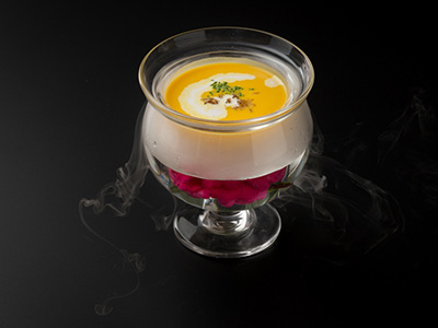 蒸して甘みを最大限に引き出し、丁寧に裏ごしして熱々のグラタンに。